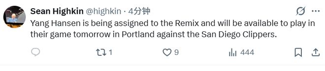 北京時(shí)間12月4日,據(jù)開(kāi)拓者隊(duì)記Sean Highkin報(bào)道,楊瀚森被開(kāi)拓者下放到發(fā)展聯(lián)盟下屬的混音隊(duì),將可以出戰(zhàn)明日混音對(duì)陣圣迭戈快船的比賽。